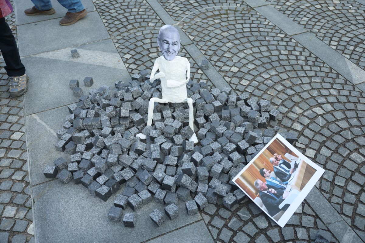 Zbrani so na Trg republike postavili "spomenik" tuji zasebni obveščevalni agenciji Black Cube, družbo pa so jim delale tudi kartonaste figure Donalda Trumpa, Benjamina Netanjahuja, Viktorja Orbana in Janeza Janše. Slednji je v rokah držal plakat, s katerim se je "zavzemal" za korupcijo, represijo in sovraštvo.