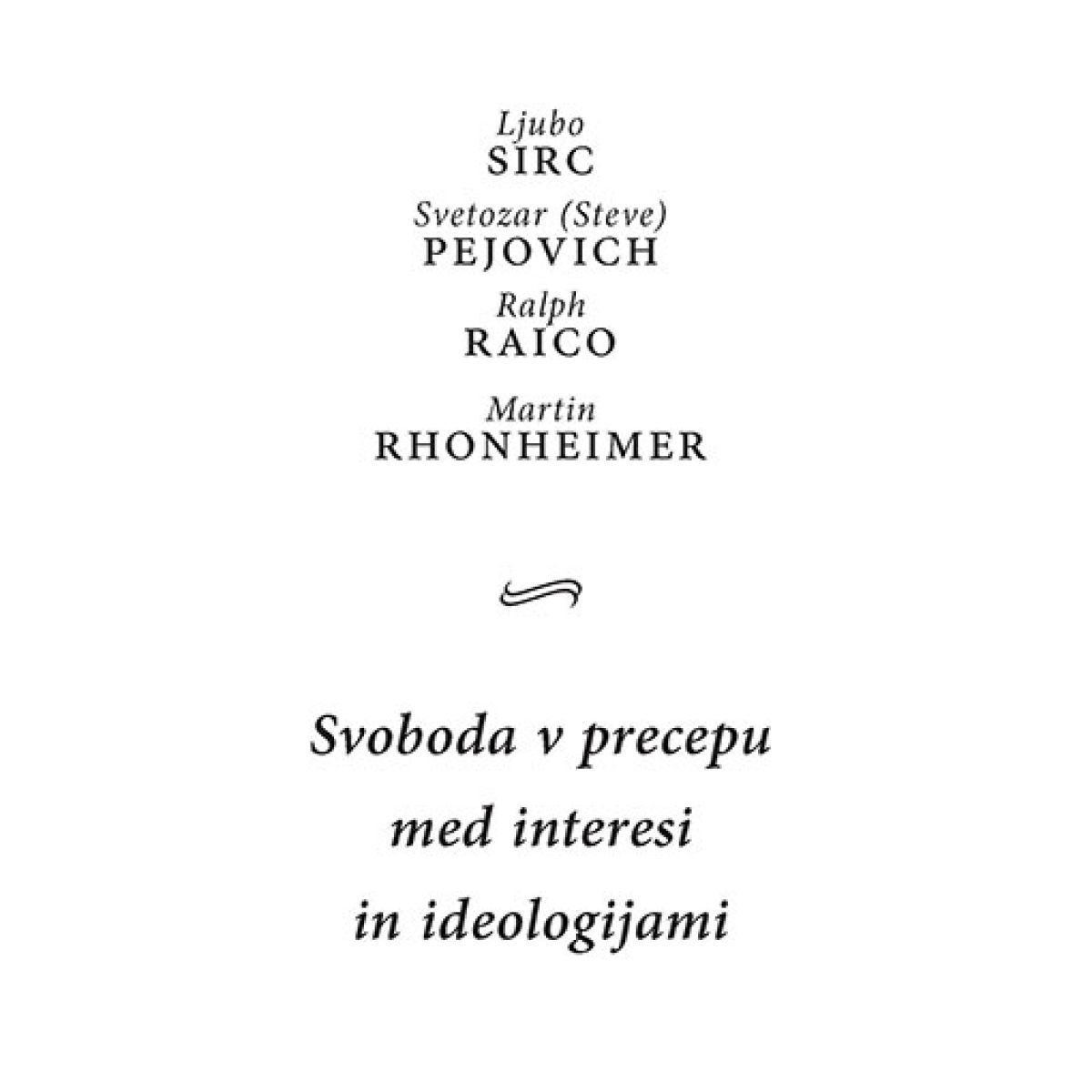 Poleg Sirčevega članka so v knjižici Svoboda v precepu med interesi in ideologijami objavljeni še članki ameriško-srbskega ekonomista Svetozorja Pejovicha (Iz socializma 20. stoletja v socializem 21. stoletja: vzpon liberalnega socializma), ameriškega ekonomista Ralpha Raica (Klasični liberalizem v dvajsetem stoletju) in švicarskega filozofa Martina Rhonheimerja (Etika tržnega gospodarstva: kritična ocena utilitarne razlage Ludwiga von Misesa).