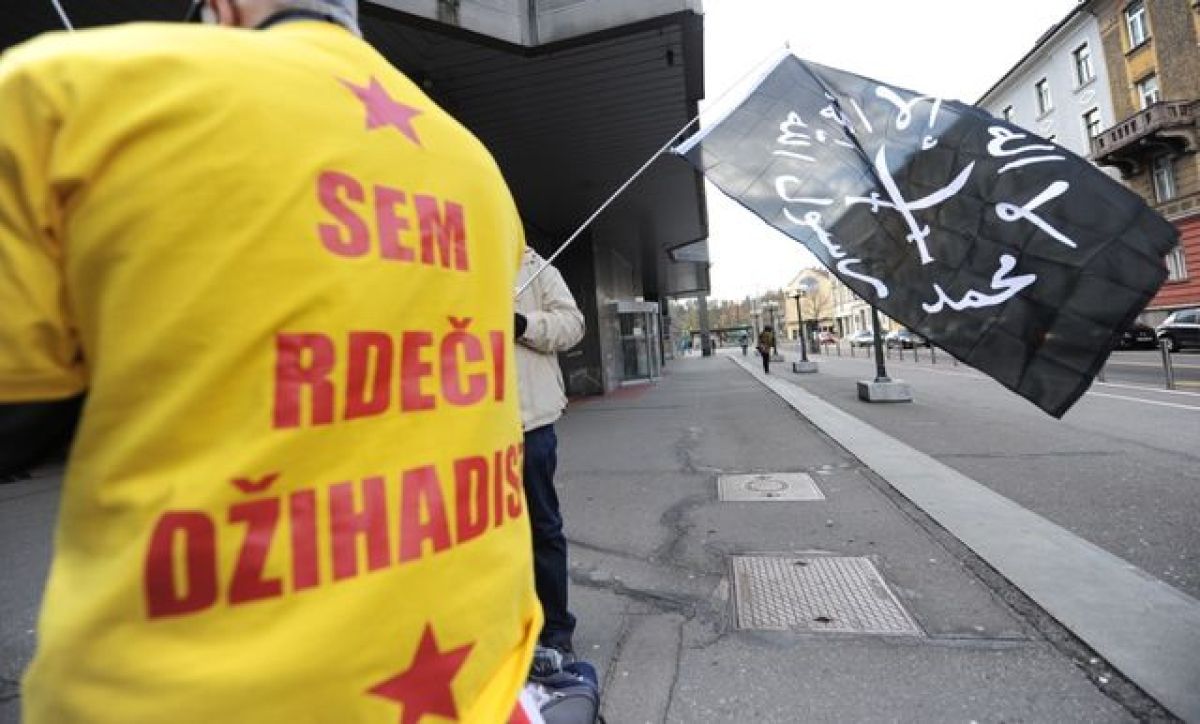 Levičarska provokacija sredi Ljubljane: "Rdeči džihadist" mahal z islamsko zastavo