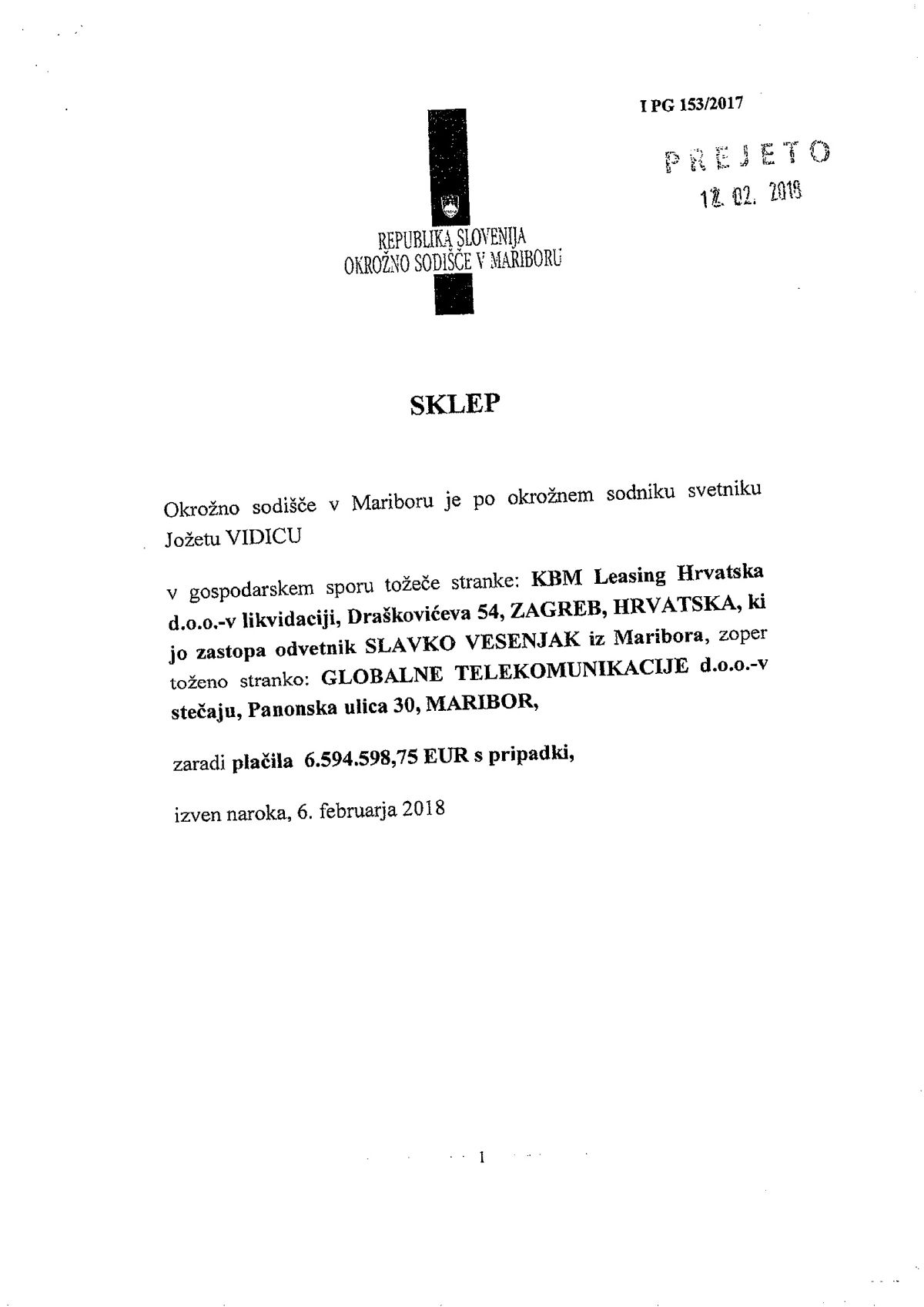 Avgusta 2017 na mariborskem sodišču KBML vloži tožbo proti Globtelu Aleša Železnika za plačilo 6,6 milijona evrov. 17. januarja 2018 Železnik predlaga stečajni postopek družbe, zato 6. februarja okrožno sodišče v Mariboru prekine pravdni postopek, na podlagi katerega so v KBM Leasingu (že v likvidaciji) želeli priti do posojenega denarja. Januarja letos je bilo po stečaju izbrisano še podjetje Invest storitve, pod prejšnjim imenom Keter invest solidarnostni porok pri najemu obeh lizingov podjetja K3 Keter telekomunikacije oziroma takrat še Keter Air iz Hrvaške. Za Mariborski Keter Air, ki se je preimenoval v K3 Keter telekomunikacije, kasneje pa v Telekomunikacijske storitve, d. o. o., je letos sodišče predlagalo postopek likvidacije brez stečaja. In nikogar več ni bilo, ki bi plačal milijonski lizing, denar pa je 'izpuhtel'.