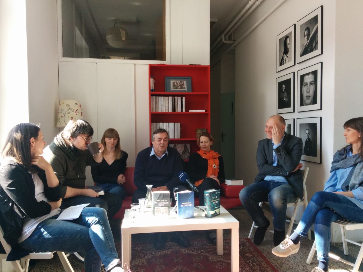 Drago Jančar je v prostorih založbe Beletrina dopoldne predstavil svoj enajsti roman In ljubezen tudi. »Tako kot o prvi knjigi je tudi o tej težko govoriti. Pisatelj se teh težav ne more znebiti,« je dajal uvodoma in se obrnil k avtorici prvenca kratkih zgodb Razvezani Ani Schnabl. Ni je izdal pri založbi Modrijan, ki je v zadnjih letih izdala kar nekaj njegovih romanov in zanje dobro poskrbela.