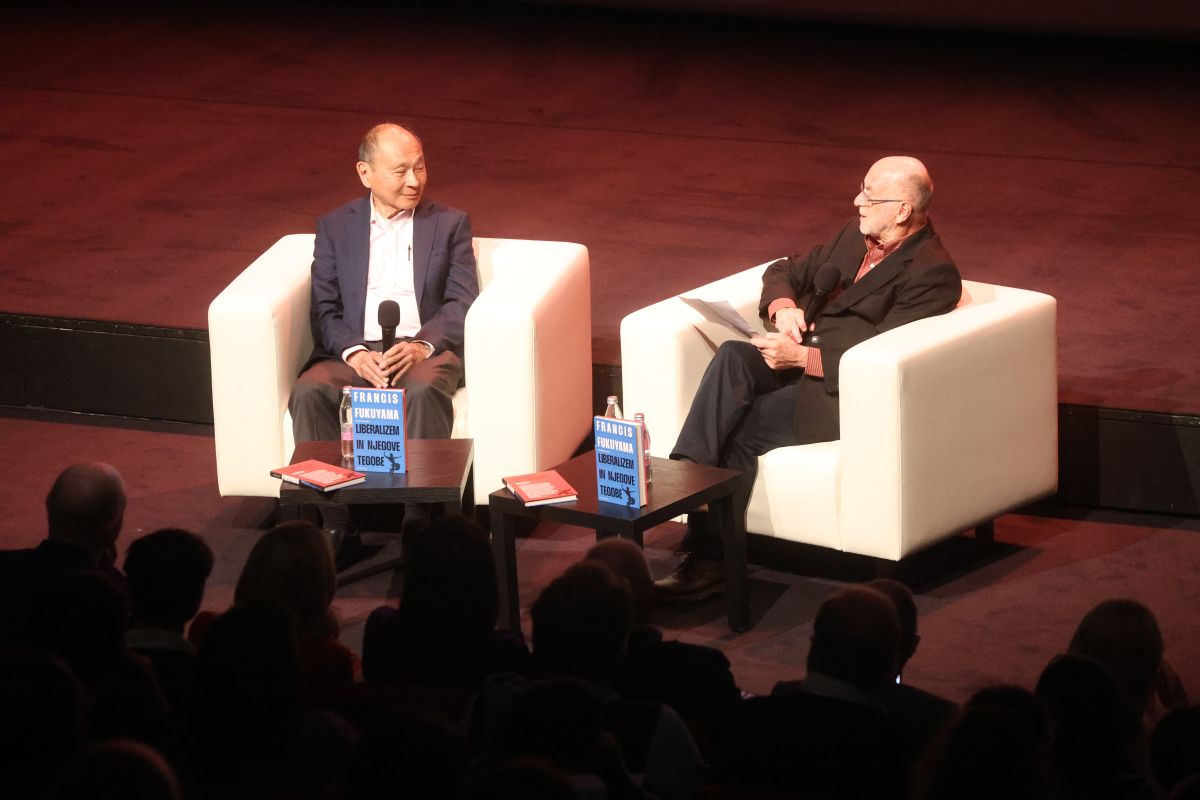 Fukuyama je v Ljubljano prišel v okviru festivala Fabula, ki jo organizira zakižba Beletrina, predavanje enega najslavnejših sodobnih mislecev in avtorjev (Konec zgodovine) pa je v Cankarjev dom privabilo smetano slovenske intelektualne elite – in tudi nekaj takih, ki se pridejo na dogodke s kamerami predvsem pokazat.