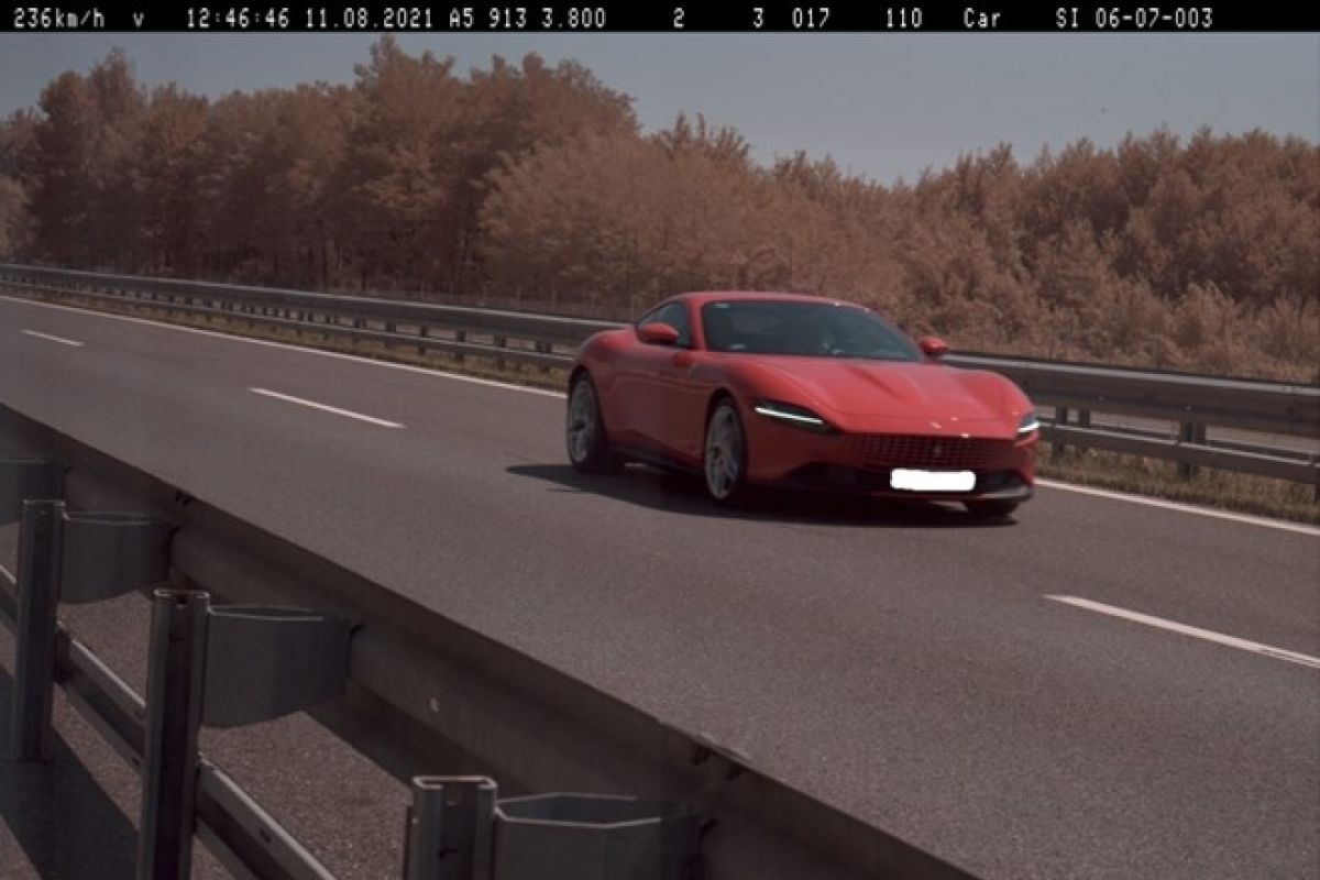 Murskosoboški policisti so v sredo ustavili 39-letnega državljana Madžarske, ki na pomurski avtocesti izven naselja Dolinsko v smeri Maribora v avtomobilu znamke Ferrari vozil s hitrostjo 236 kilometrov na uro. Omejitev hitrosti na tem odseku je sicer 110 kilometrov na uro, so sporočili z murskosoboške policijske postaje.