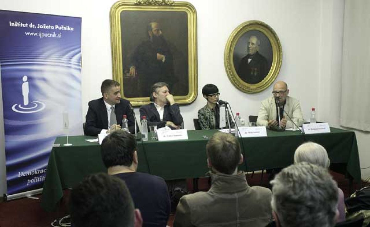 Inštitut Jožeta Pučnika in bruseljski Center Wilfrieda Martensa za evropske študije sta včeraj pripravila 12. Pučnikov večer z naslovom Svoboda govora in mediji - javni diskurz med politično korektnostjo in cenzuro. Publicista Bernard Nežmah in Maja Sunčič ter zgodovinar Vasko Simoniti so spregovorili o razmerah v slovenskih medijih.
