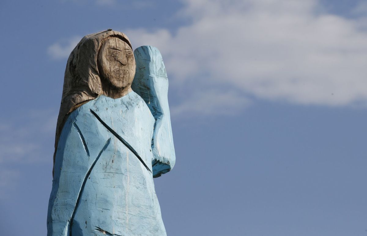 Melania je pogorela: groteskno skulpturo prve dame pri Sevnici so zažgali