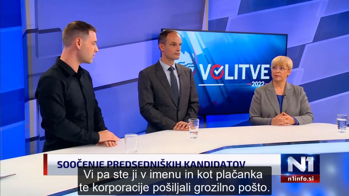 Predsedniški kandidat Levice Miha Kordiš je na predvolilnem soočenju na N1 Nataši Pirc Musar očital, da je kot »plačanka« korporacij pošiljala grozilna pisma sindikalistom, ki so se zavzemali za pravice delavcev. Pirca Musarjeva Kordiševe očitke zavrača.