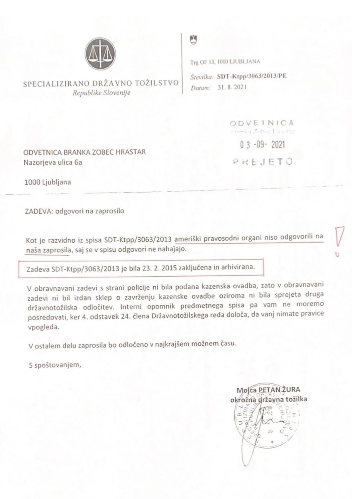 Poslal nam je tudi sporočilo tožilstva, ki ga obvešča, da je zadeva zaključena in arhivirana: