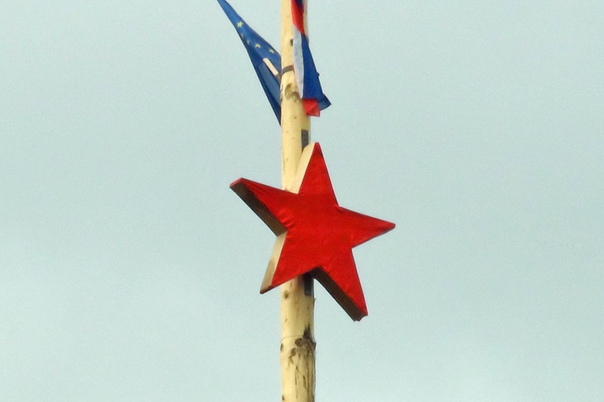 Na Kočevskem velikanska rdeča zvezda, večja od zastav Slovenije in EU
