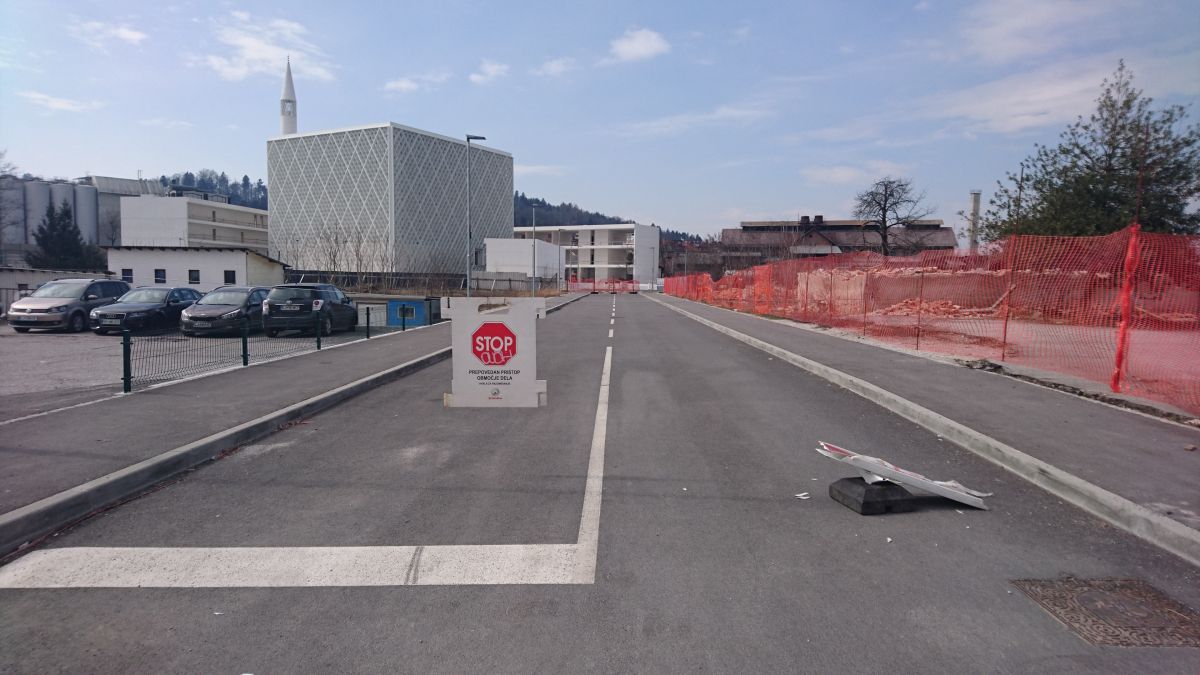 Na cesti, ki pelje k džamiji, je nekdo (verjetno gre za podjetje Schindler) napel jeklenico in nanjo pripel napis Prepovedan pristop – območje dela, čeprav je vhod na gradbišče islamskega centra z druge strani.