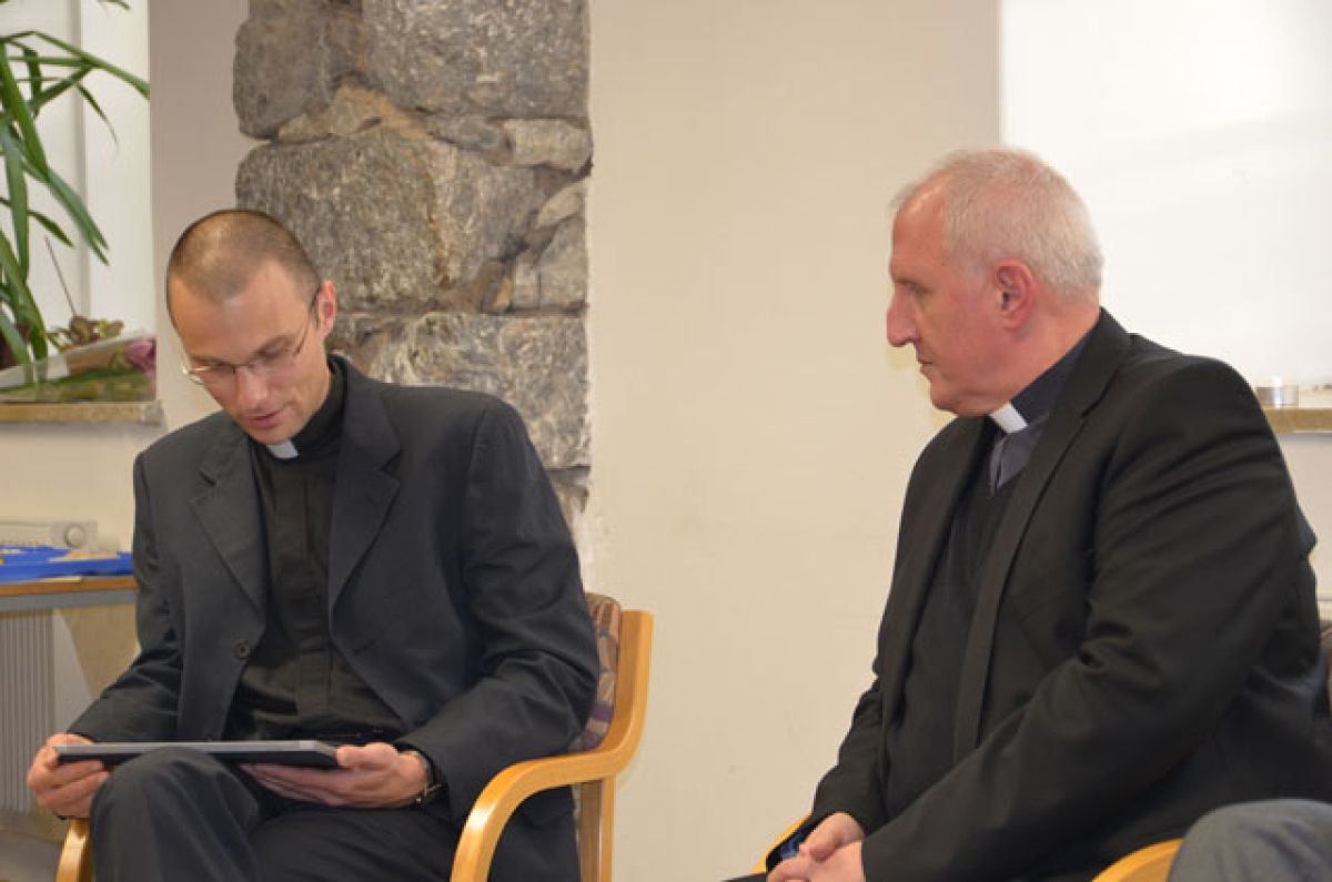 Rektor JDSJ, p. Peter Rožič (foto levo), je msgr. Zoretu najprej razložil načrte za okrepitev dolgoletnega izobraževanja mladih pri sv. Jožefu in za gradnjo novega študentskega centra. Slovenski jezuiti imajo namreč dolgoletno tradicijo vzgoje mladih, ki so jo v zadnjih desetletjih pomembno sooblikovali p. Silvo Šinkovec, p. Viljem Lovše in p. Tomaž Podobnik, za kar se jim je novi jezuitski predstojnik tudi zahvalil. Napovedal je, da se bo v naslednjih letih jezuitsko poslanstvo še okrepilo z načrtno vzgojo mladih za krščanske vrednote in za aktivno državljanstvo. Jezuiti si želijo vzgojiti mladino, ki bo lahko odgovarjala na potrebe časa in še posebej krajevne Cerkve. V tem duhu je v Italiji dolga leta deloval pokojni p. Ivan Žužek, ki je bil vzgajan ravno pri sv. Jožefu, pozneje pa je postal ikona italijanskega skavtstva. Zanj je v pripravi postopek za beatifikacijo.