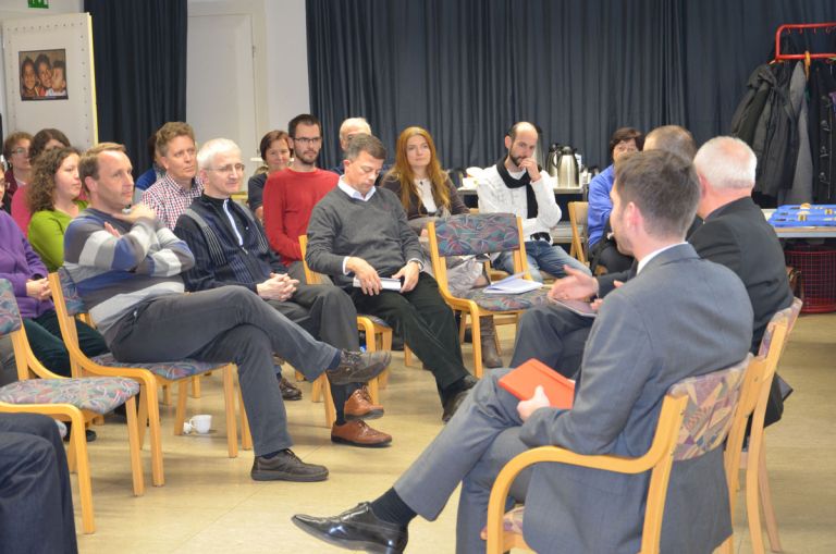 Msgr. Stanislav Zore se je v pogovoru dotaknil še begunske problematike. Poudaril je, da bomo pred Bogom Očetom še najbolj sojeni po kosu kruha ali kozarcu vode, ki ga (ne) bomo dali sočloveku. Je pa ob tem poudaril tudi vlogo države, ki je dolžna poskrbeti tako za varnost beguncev kot za varnost lastnih državljanov, ter moč svetovnih voditeljev, ki lahko edini vplivajo na rešitev begunske krize.