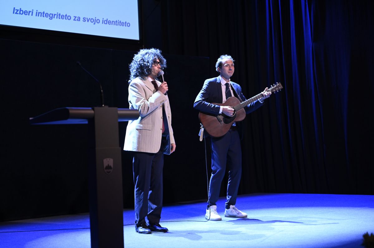 Ni pa prišel predsednik vlade Robert Golob, ki ga bo komisija v naslednjih dneh zaslišala zaradi domnevnih političnih pritiskov na nekdanjo notranjo ministrico Tatjano Bobnar. Toda Goloba je na prireditvi nadomeščal imitator, komik in povezovalec večer Tilen Artač, ki je zbrane zabaval z likom predsednika vlade in prepeval skupaj s kolegom Robertom Petanom.
