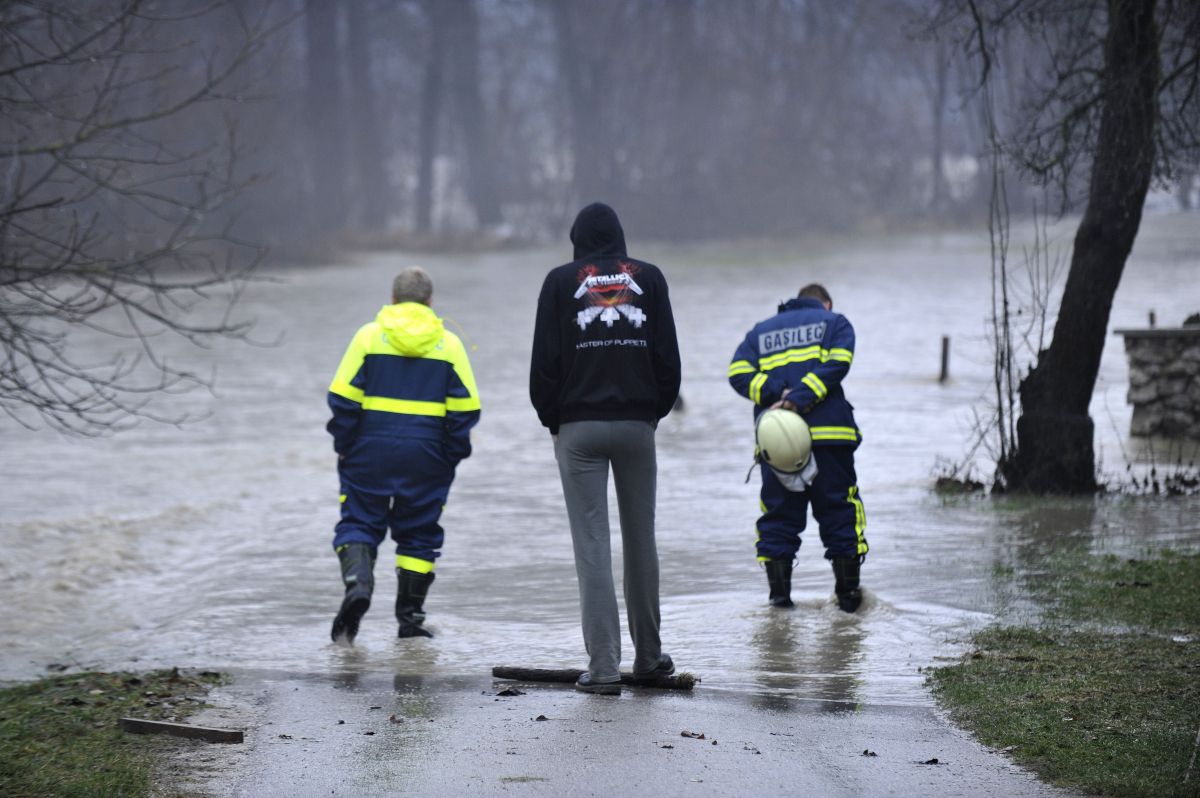 Narasle vode na vozišču so ponoči presenetile dva voznika osebnih avtomobilov, ki sta na cesti Okroglica-Vogrsko obtičala na vozišču, a so gasilci nato avtomobila odstranili z vozišča.