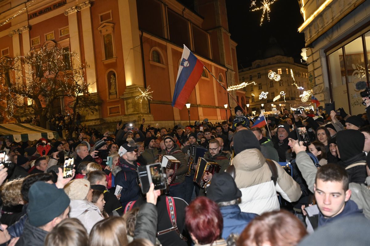 Poslušat jih je prišel prvak SDS Janez Janša, ki je pred Prešernovim spomenikom celo plesal z neidentificirano plavolasko, na trgu pa smo opazili tudi župana Ljubljane Zorana Jankovića, ki ga je sicer bolj kot harmonikarji pritegnil prihod Dedka Mraza, ki je potekal v istem času.