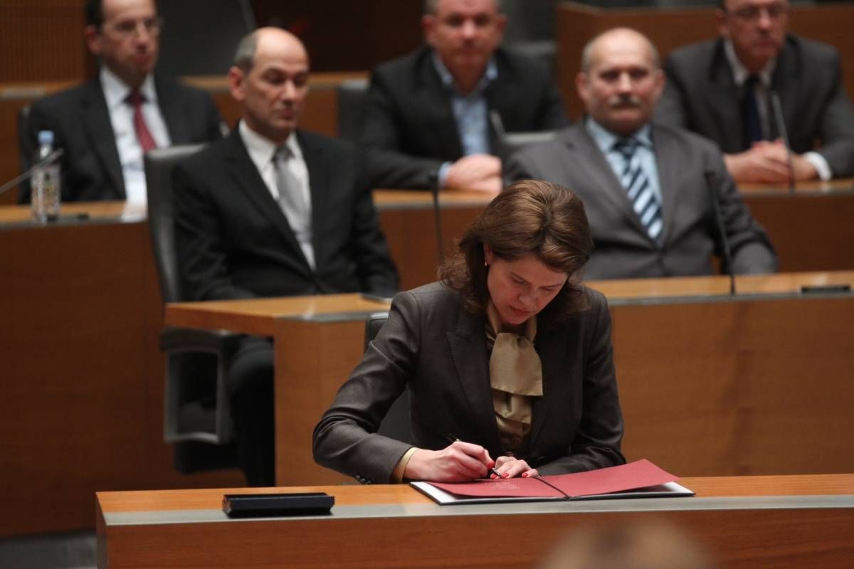 V nagovoru po prisegi se je zahvalila za zaupanje, kar razume kot potrditev, da "lahko Slovenijo skupaj popeljemo na mesto, kamor si želi". "Moja roka bo odprta za sodelovanje, to si želijo tudi naši ljudje," je dejala.