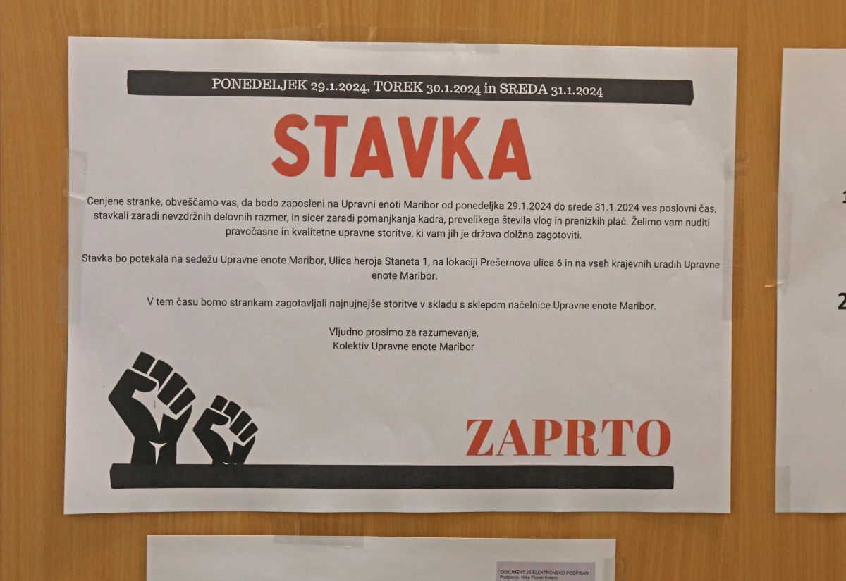 V Sindikatu državnih organov Slovenije ob današnji stavki na 54 upravnih enotah vlado pozivajo, naj začne reševati položaj javnih uslužbencev upravnih enot. Kot so poudarili na novinarski konferenci, stavkajo, ker druge možnosti ne vidijo. Če se ne bo zgodilo nič, bodo stavko nadaljevali prihodnjo sredo, napovedujejo tudi zaostrovanje aktivnosti.