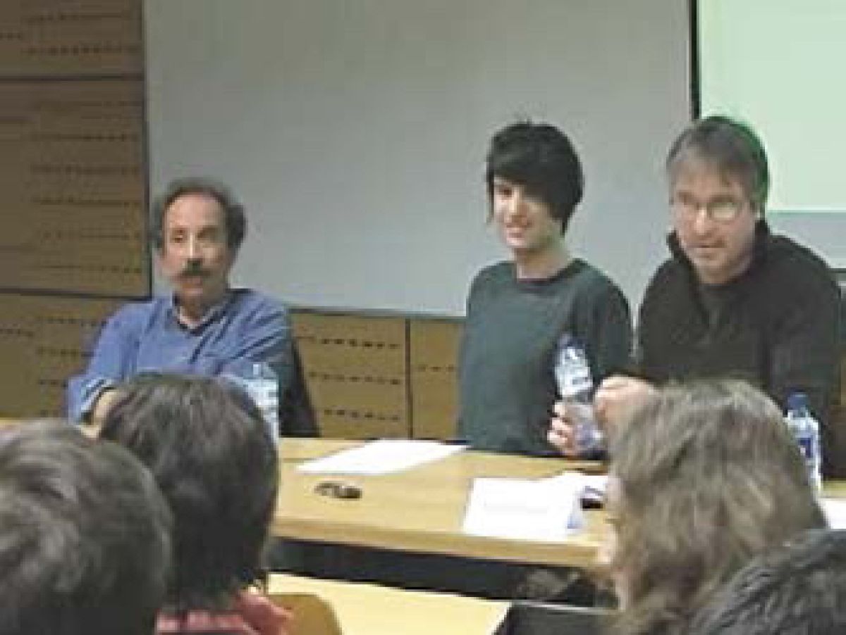 Tim Dobovšek (v sredini) kot moderator okrogle mize z naslovom Socialna demokracija ali ljudje, sindikati ali spremembe. Ob njem sta Tonči Kuzmanič (levo) in Andrej Kurnik