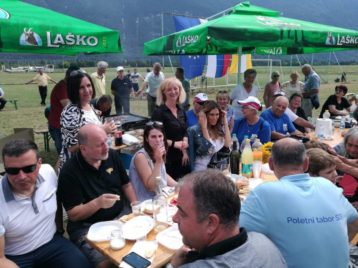 Nove fotografije: Zmago Jelinčič se na taboru v Bovcu objema s poslanci SDS