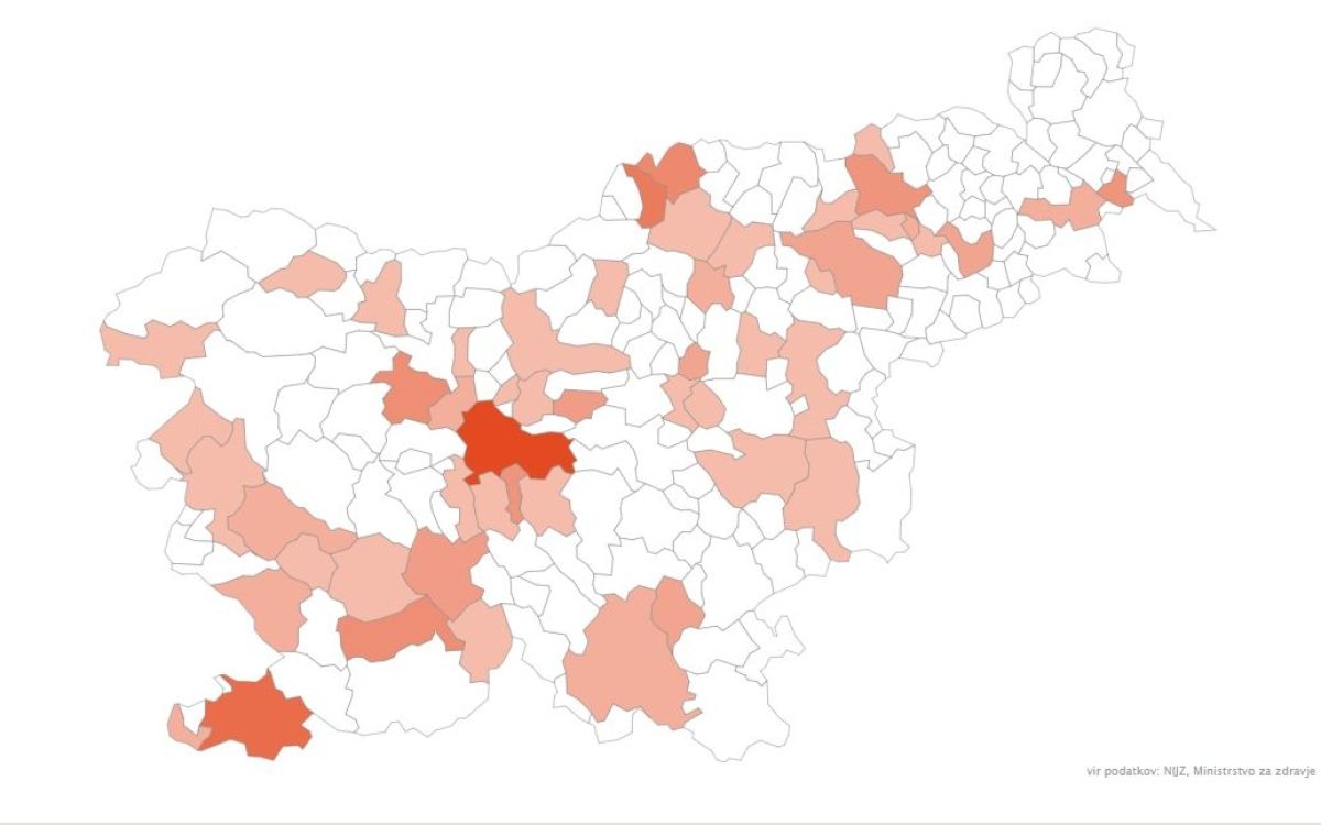 Nove okužbe po občinah: največ v Ljubljani, kar štiri v Črenšovcih