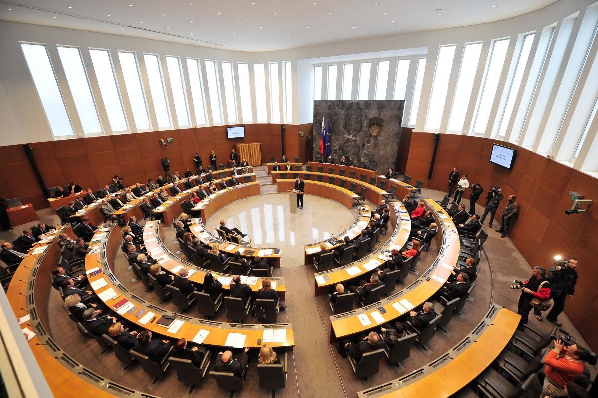Novoizvoljeni poslanci so veliki razpravni dvorani parlamenta zasedli mesta, o katerih so se dogovorili na sestanku začasnih vodij poslanskih skupin. Največja poslanska skupina Pozitivna Slovenija, ki jo zastopa 28 poslancev, bo zasedla mesto na sredini dvorane.