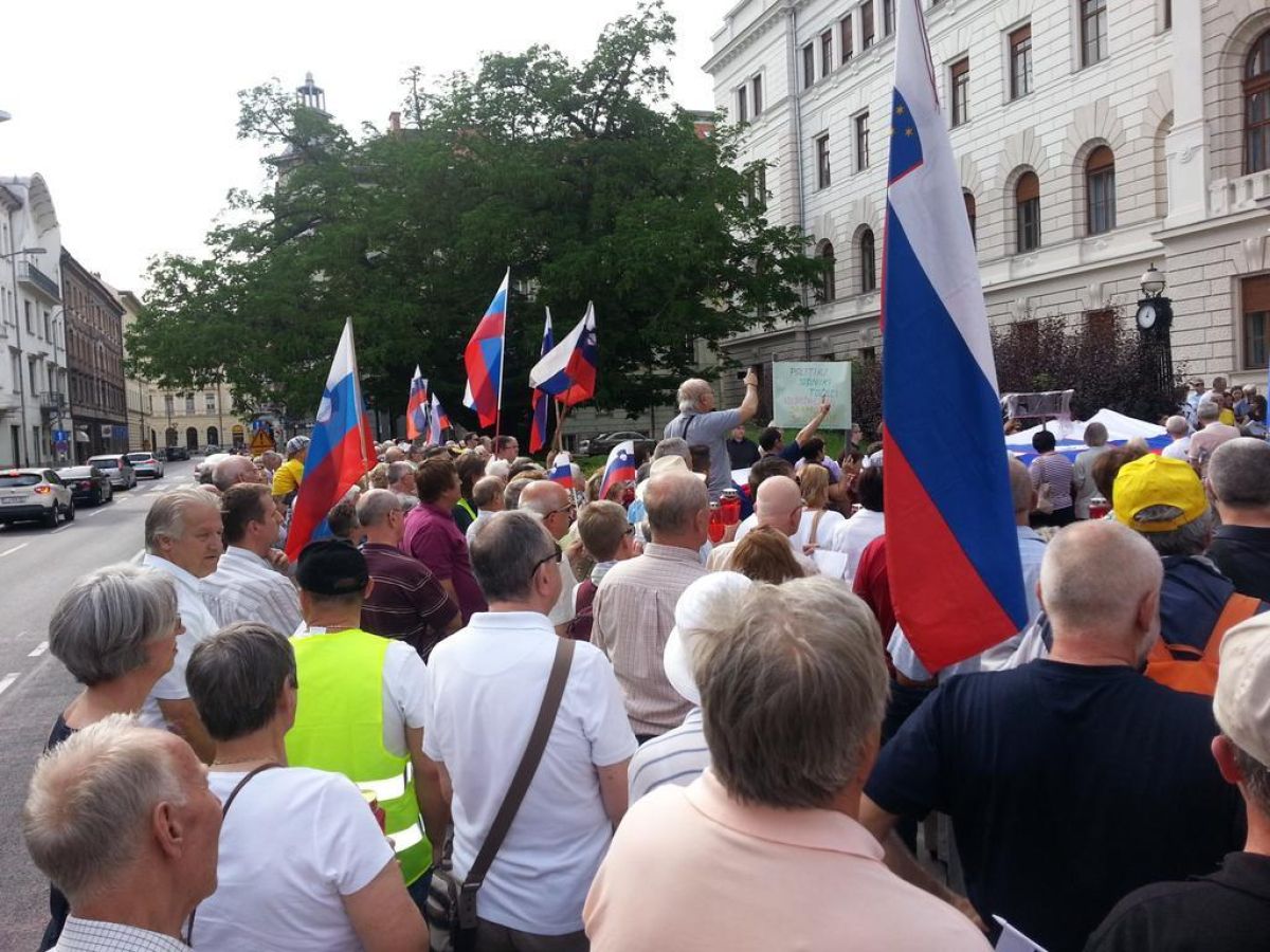"Zahtevamo, da nemudoma izpustite Janeza Janšo in zakljucite ta sramotni sodni proces!" je ob uvodu v protest na twitterju zapisal evropski poslanec Milan Zver.