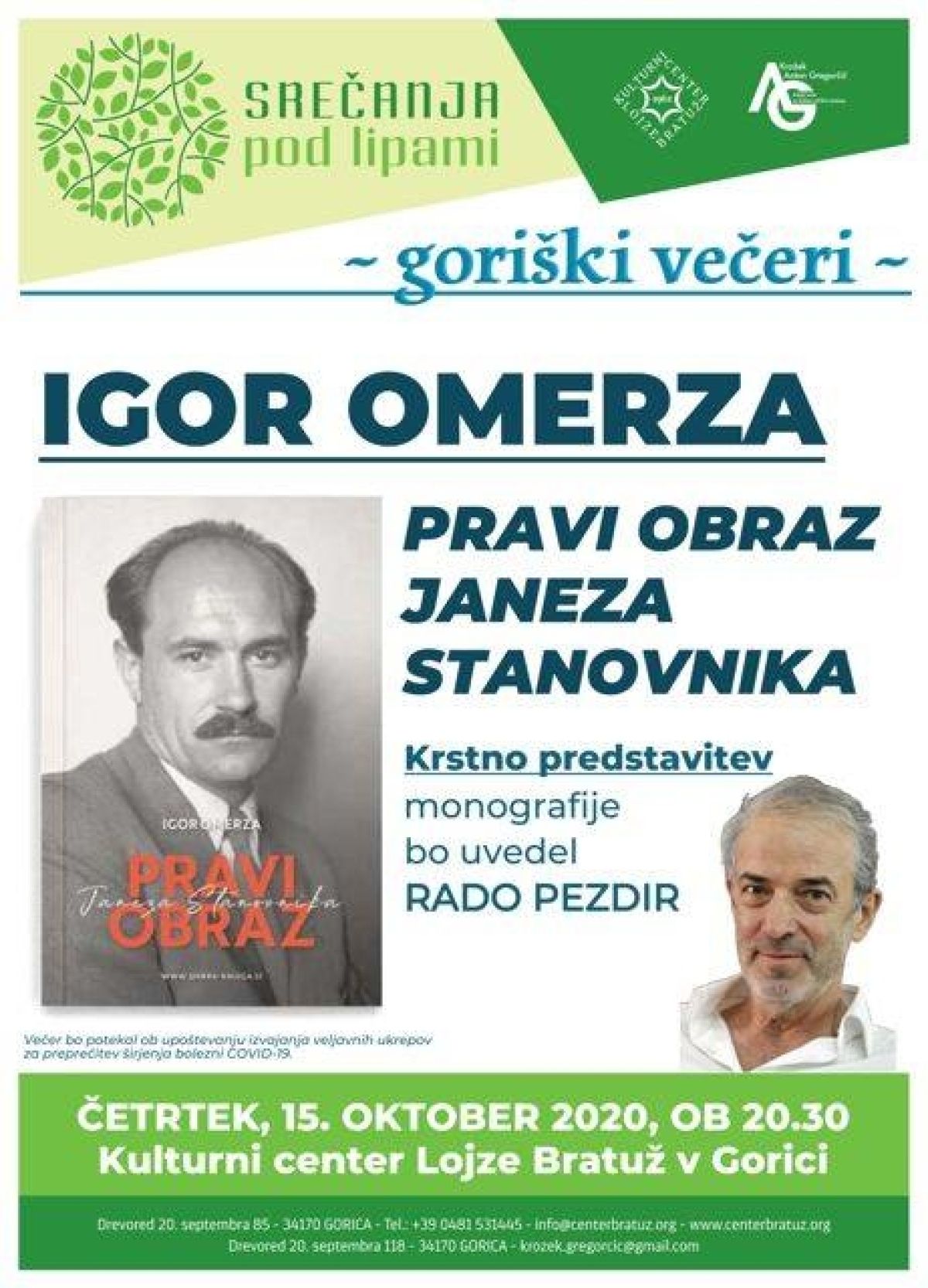 Kulturni center Lojze Bratuž bo danes (v četrtek) ob 20.30 gostil krstno predstavitev nove knjige, ki jo podpisuje raziskovalec arhivov in publicist Igor Omerza z naslovom Pravi obraz Janeza Stanovnika. Knjiga je izšla pred nekaj tedni, že pred izidom je sprožila več odzivov.