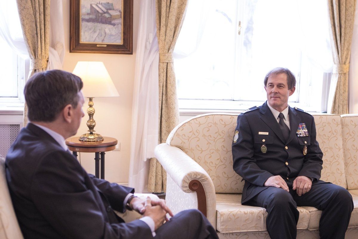 Predsednik republike in vrhovni poveljnik obrambnih sil Borut Pahor je danes sprejel Andreja Ostermana in novega načelnika SV Alana Gederja. Dosedanjemu načelniku se je predsednik zahvalil za njegovo vodenje SV, novemu načelniku pa je zaželel uspešno delo, je predsednik sporočil na Twitterju.