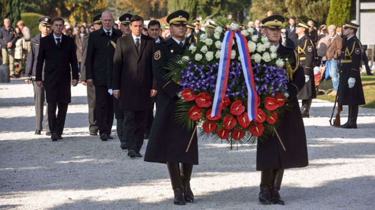 Predsednik republike Borut Pahor, predsednik DZ Milan Brglez, predsednik vlade Miro Cerar in predsednik DS Mitja Bervar ter načelnik generalštaba Slovenske vojske Andrej Osterman in namestnica generalnega direktorja policije Tatjana Bobnar so na dan spomina na mrtve na ljubljanskih Žalah položili vence padlim v vojnih spopadih 20. stoletja.