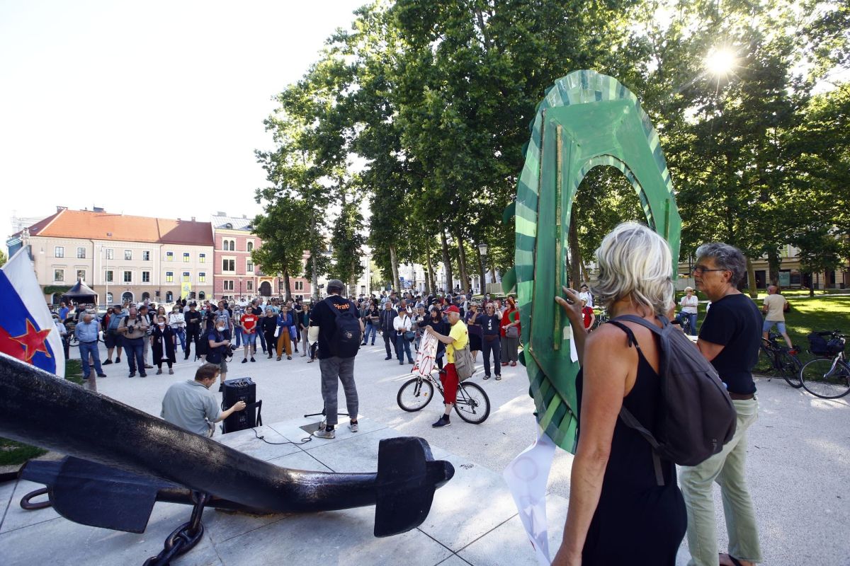 Na Kongresnem trgu se je zbralo več deset protestnikov, ki so izrazili nezadovoljstvo nad včerajšnjim obiskom predsednika Boruta Pahorja v Italiji, kjer se je poklonil pred bazoviško fojbo. Ob koncu so na zeleni venec kot opravičilo Primorski položili papirnate zvezde in kapljice, ki so simbolizirale takratne boje za svobodno državo.
