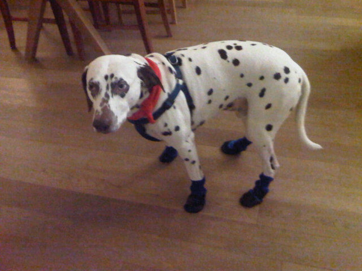 Pes, ki je pred leti postal bolj slaven kot gospodar, je v teh mrzlih in zaledenelih dneh znova pritegnil pozornost. »Naš otroček ima pa nove čeveljčke, da ga ne bolijo tačke od soli,« je ob objavi fotografije dalmatinca z rdečo rutico okrog vratu in modrimi 'zoknčki' zapisala Špela Vovk, svetovalka novoizvoljenega predsednika republike Boruta Pahorja.