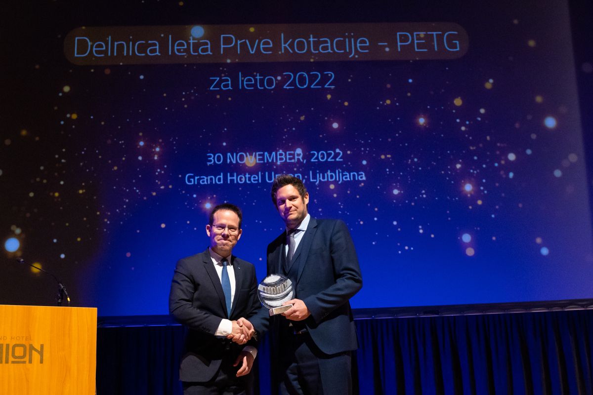 Po mnenju borze je imela delnica PETG v letu 2022 najvišji promet, porast tečaja, porast prometa in število dni, ko se je z delnico trgovalo. Nagrado je v imenu družbe Petrol prejel Matija Bitenc, član uprave Petrol, odgovoren za področje Finance, informacije in tveganja.