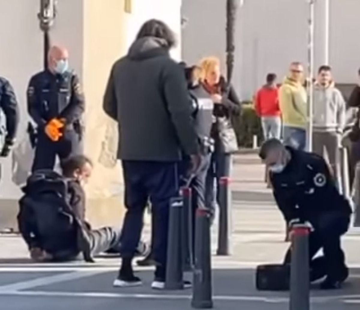 Na posnetkih s Tartinijevega trga je videti policijo in dve osebi na tleh, ena je očitno vklenjena.