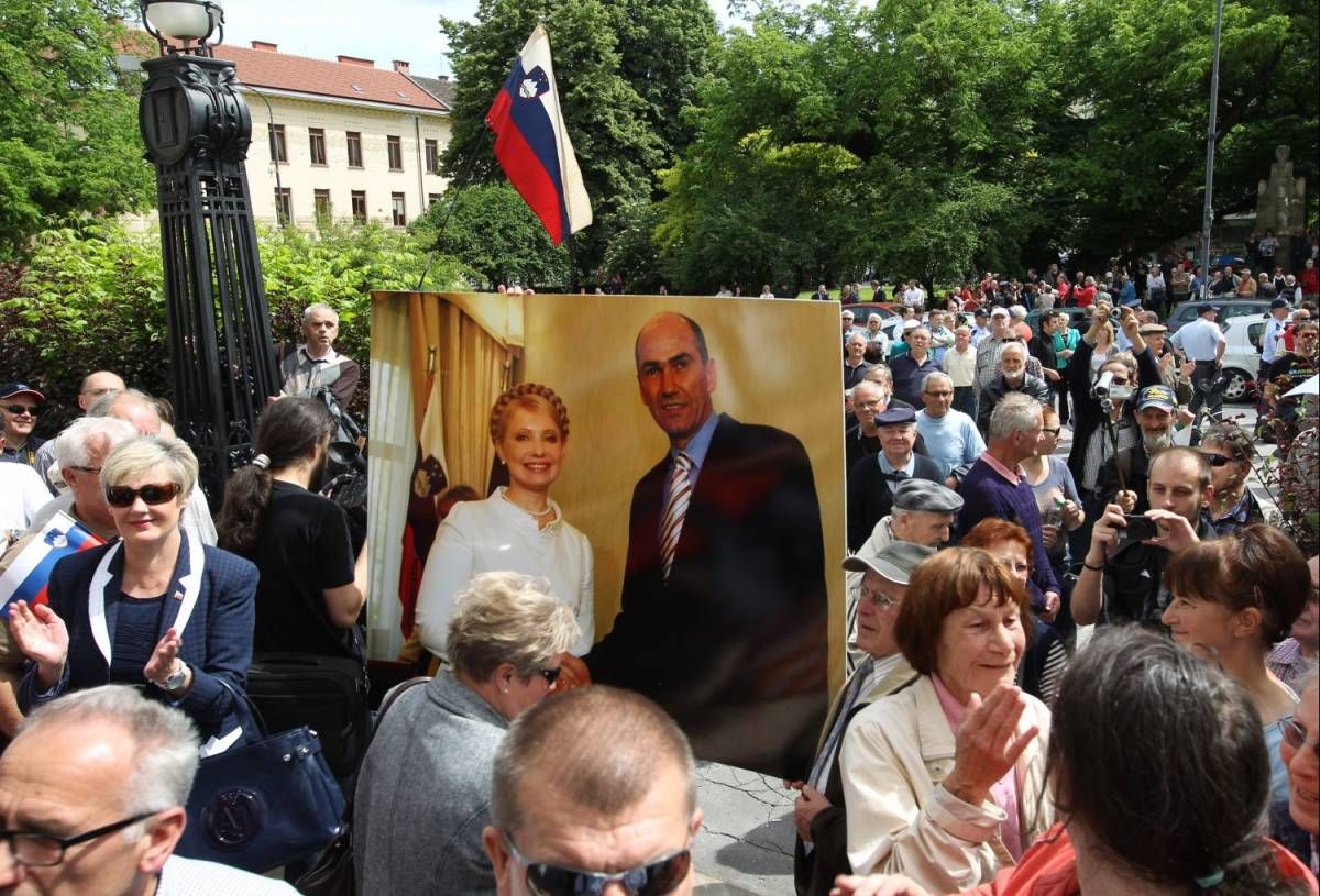 Že malo po 14. uri so se pred sodiščem začeli zbirati podporniki. Prišli smo, da branimo demokracijo in vrednote osamosvojitve, je svojo udeležbo razlagala večina. »Po televiziji sem videla, kako so huligani teptali slovensko zastavo, simbol, ki nam zavednim Slovencem pomeni domoljubje,« je za Reporter povedala Marjetka Dolinar, priznana slikarka iz Argentine, ki se je pred leti vrnila v Slovenijo. Nikakor ne more razumeti konstrukta, ki si ga je slovensko pravosodje izmislilo zoper Janeza Janšo, ki je v procesu obtožen domnevnega prejemanja podkupnine. Pa še to ne. Dobil naj bi obljubo za podkupnino.