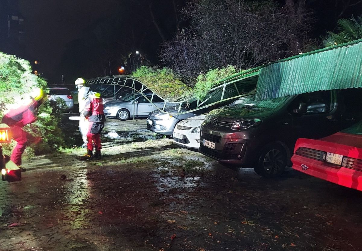 Pogleje, kako silovito se je neurje zneslo nad Izolo: drevo podrlo garaže in zmečkalo avtomobile (FOTO)