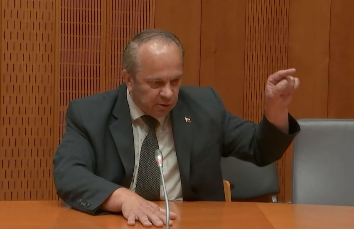 Poslanec SDS Branko Grims je na današnji seji parlamentarne preiskovalne komisije, na kateri bi morali zaslišati odgovorne za škandalozno brskanje po bančnih računih novinarjev, duhovnikov, poslovnežev in drugih Janezu Janši zanimivih oseb, ponorel in skušal na vsak način doseči preložitev seje.