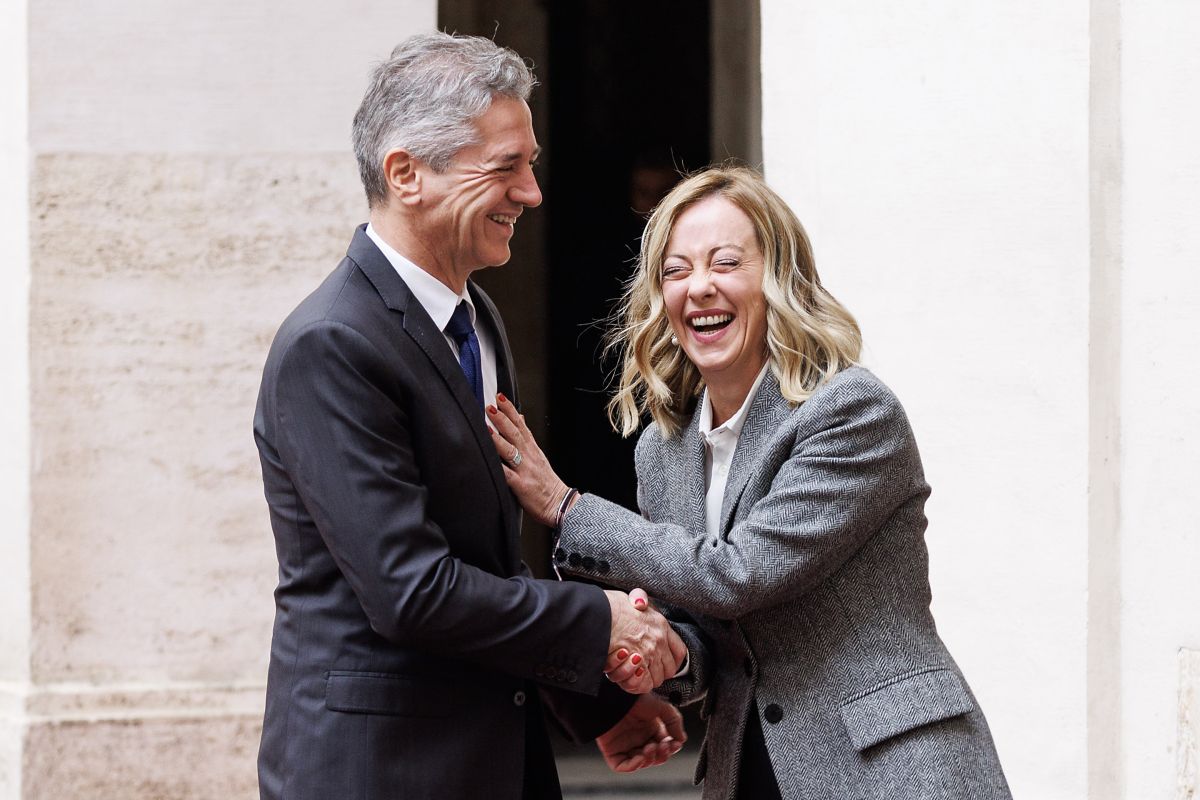 Italijanska premierka Giorgia Meloni je v Rimu sprejela slovenskega kolega Roberta Goloba in ga, vidno izgubljenega v finesah državniškega protokola, usmerjala po rdeči preprogi in ob poziranju za kamere.