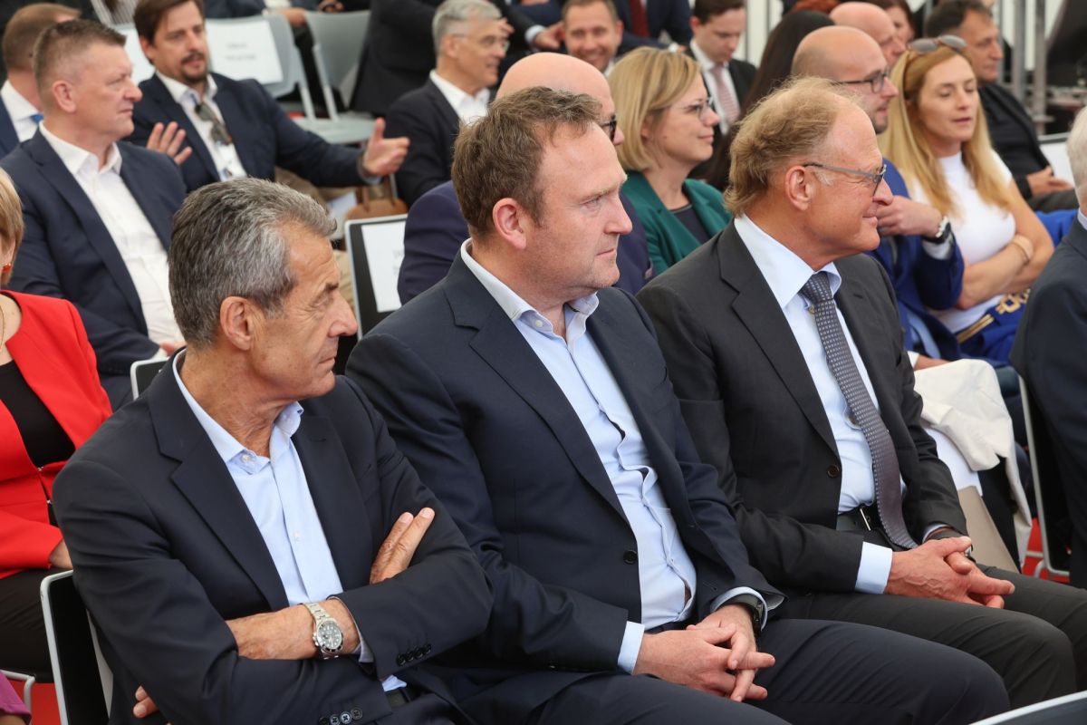 Državno premoženje so zastopali šef SDH Žiga Debeljak, član uprave Darsa in zaupnik premierja Goloba Andrej Ribič, šef Elesa Aleksander Mervar ter prvi mož Slovenskih železnic Dušan Mes. Prisotnost slednjega, ki je sedel celo v drugi vrsti povabljencev v družbi Petriča in Škrabca je bila pomenljiva. Na proslavi je bila namreč tudi infrastrukturna ministrica Alenka Bratušek, ki je nedavno pozvala k reviziji obsceno drage prenove železniške postaje Jesenice.