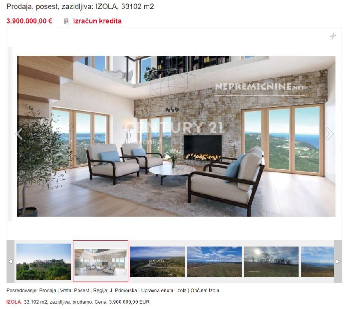 Posestvo ima gradbeno dovoljenje za gradnjo kmetijsko-gospodarskega kompleksa – nove kmetije z dopolnilno turistično dejavnostjo, še oglašuje prodajalec in namiguje, da si lahko novi veleposestnik denimo omisli nasad oljk.