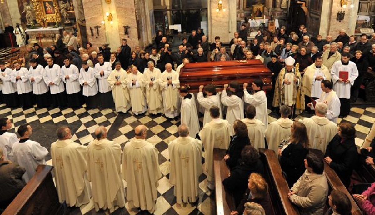 Polna ljubljanska stolnica ob sprejemu pokojnega škofa Rožmana
