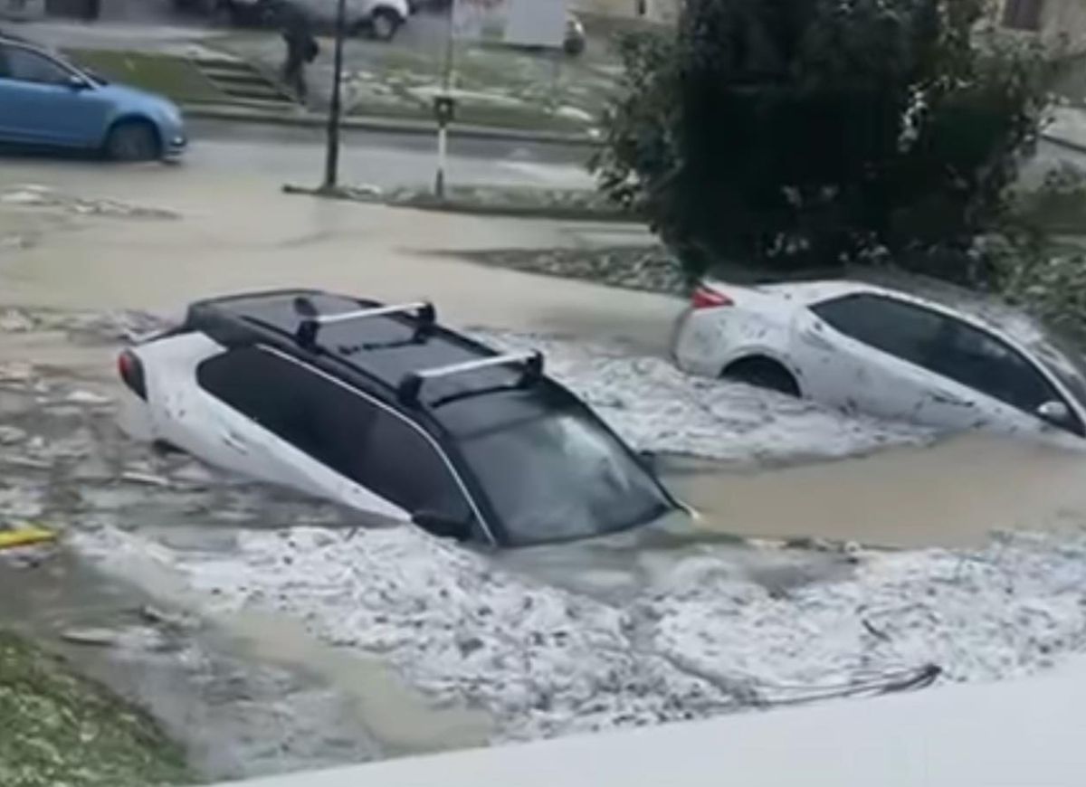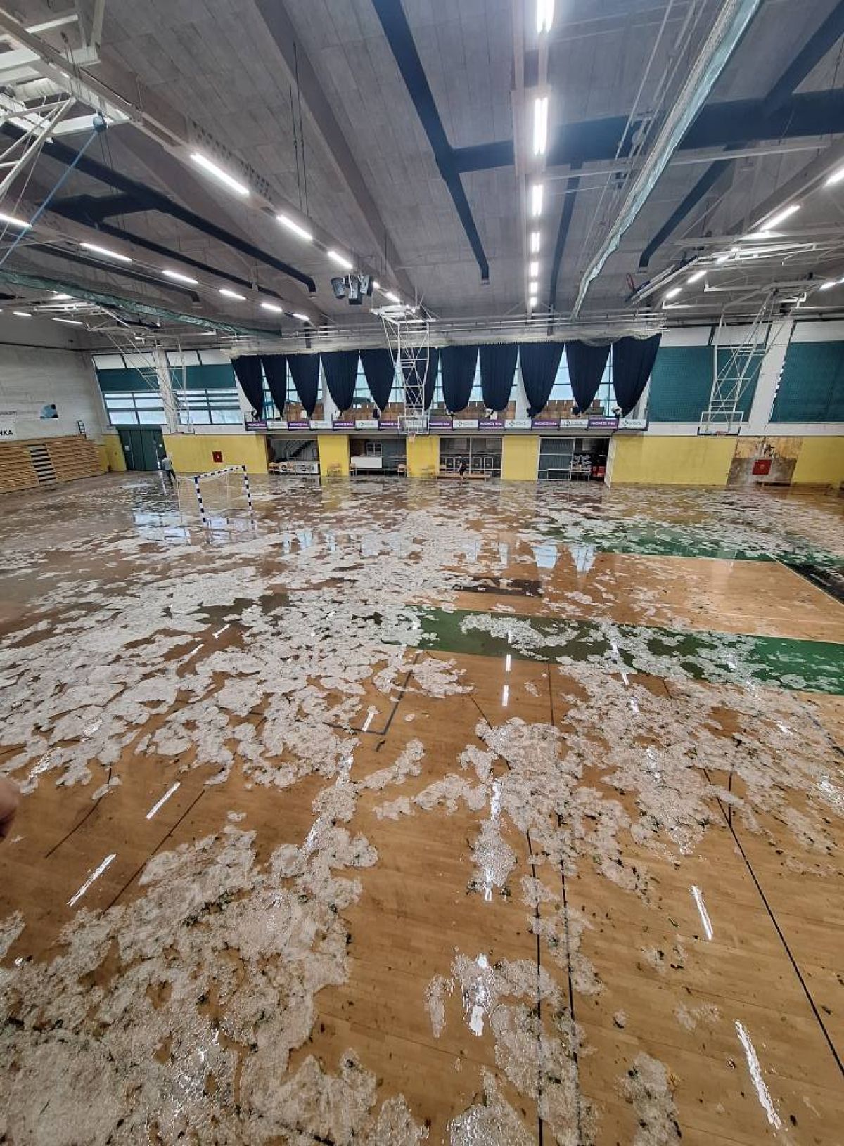 Močna nevihta je v Novem mestu prinesla tudi točo. Velike količine padavin so poplavile nekatere ceste, zalile vozila, voda pa je poplavila tudi športno dvorano Leona Štuklja.