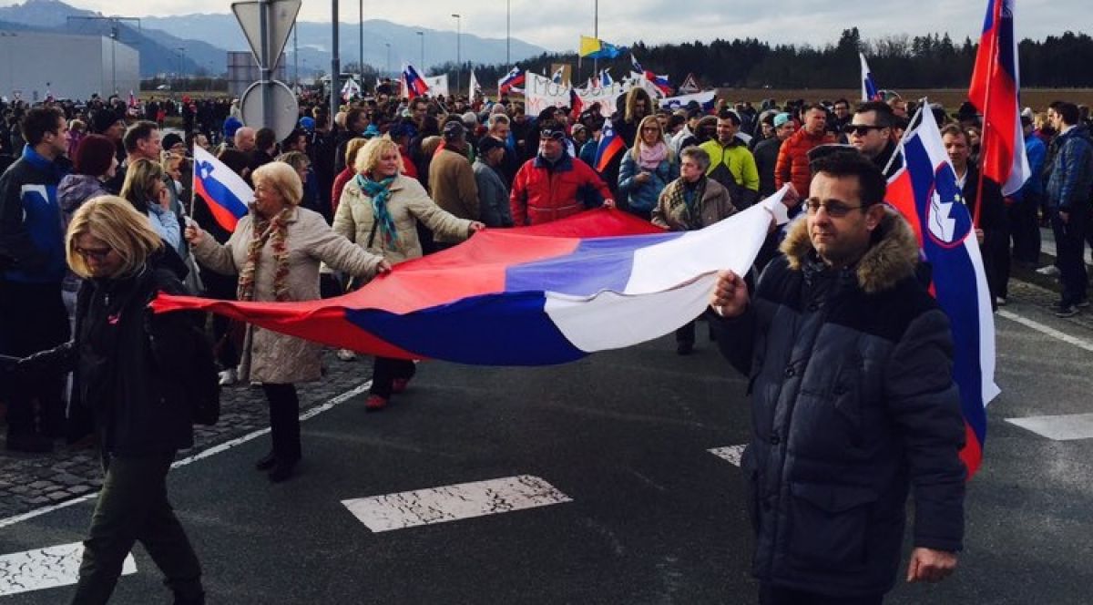 "Dol z migranti, dol z vlado, z vso to bando na grmado", „Migrantski center, NE, hvala!“, „Slovenijo Slovencem, ne migrantom“, „Šefic, nisi sončni kralj“, „Kako dolgo bomo še hlapci?“, "Tudi mi smo za mir. Evropo Evropejcem", "Turki so v deželi spet" in „Prodali ste Slovenijo, zdaj pa kradete davkoplačevalski denar“ so samo nekateri izmed številnih napisov na transparentih, ki so jih danes pred poslopjem nekdanjega Baumaxa v Šenčurju pri Kranju na shodu proti migrantskemu centru nosili Slovenci, ki jim je mar za slovensko državo. Po prvih ocenah se je zbralo okoli 5.000 ljudi, ki imajo s seboj slovenske zastave.