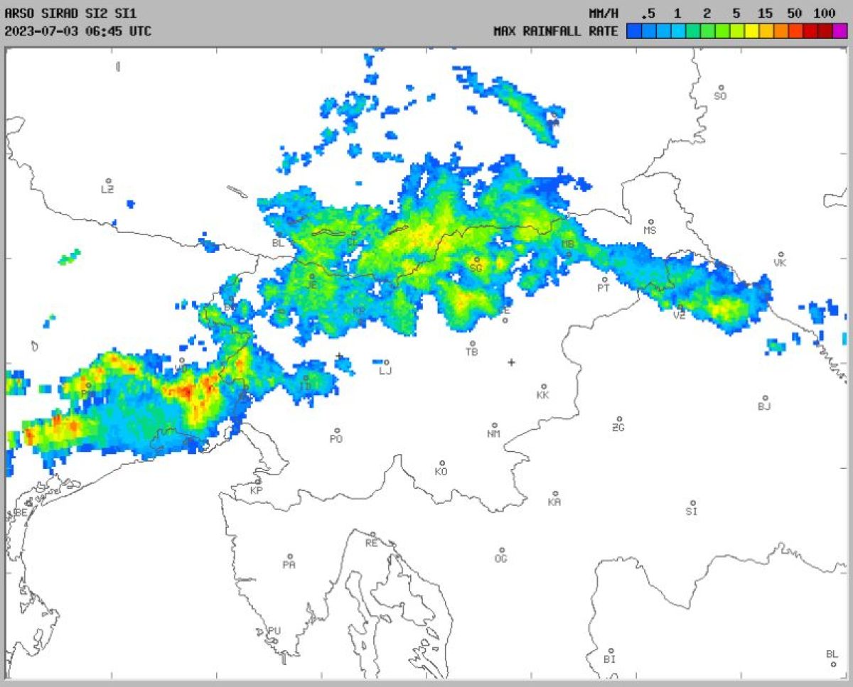 Ob nevihtah z nalivi lahko do velikih pretokov narastejo posamezne reke zlasti v severni polovici države, še opozarja Arso. Na tem območju in v osrednji Sloveniji lahko hitro narastejo in se razlijejo tudi hudourniški vodotoki. Ta pojav bo možen že popoldne, najbolj verjeten pa v nočnem času, opozarjajo.