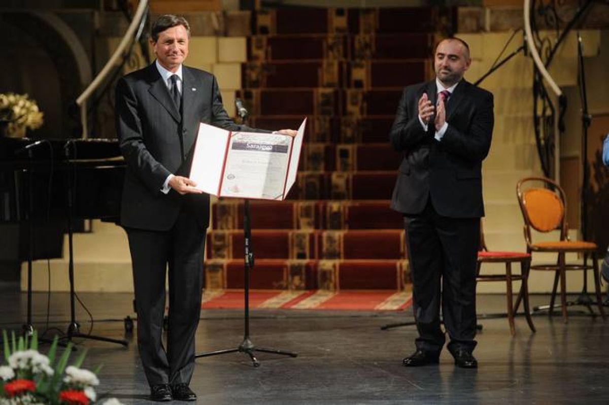 Predsednik republike Borut Pahor je včeraj med uradnim obiskom v Bosni in Hercegovini prevzel nagrado Isa beg Ishaković zaradi njegovih posebnih zaslug za BiH. Na slovesnosti v Narodnem gledališču v Sarajevu je Pahor izrazil solidarnost z žrtvami poplav v BiH in izrazil podporo evropski prihodnosti BiH.