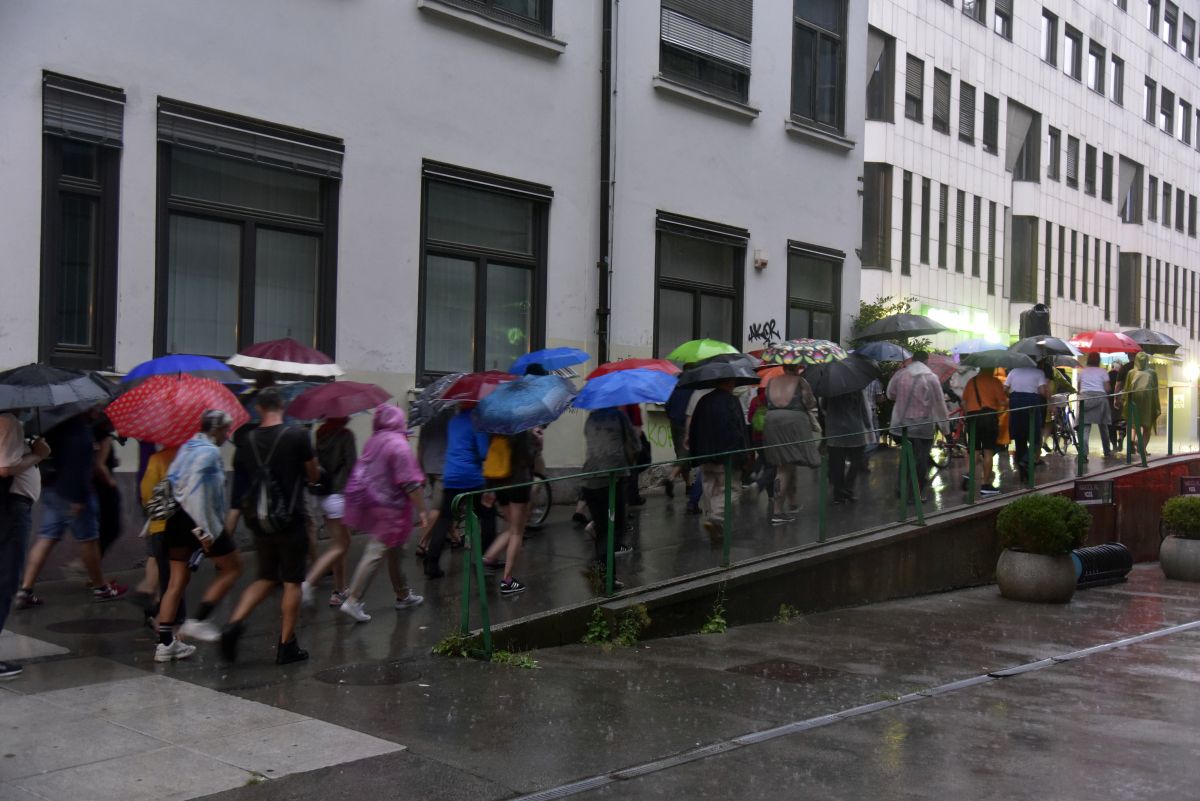 Protestniki bežali pred dežjem in zahtevali, da se denar namesto za vojsko porabi za zdravstvo, kulturo, socialo... (FOTO)