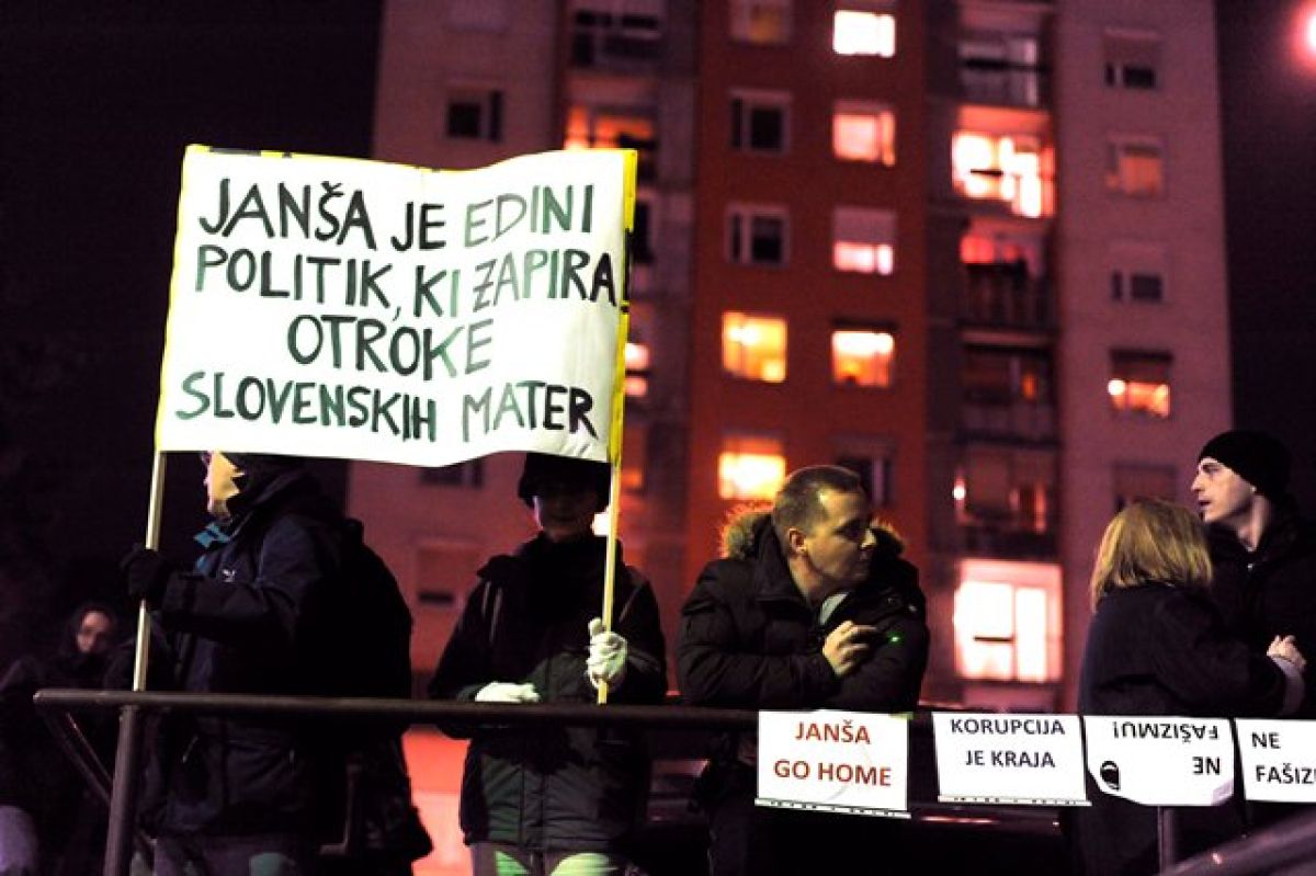 Protestniki Janšo pričakali s transparenti, Kanglerja pa z žaljivkami