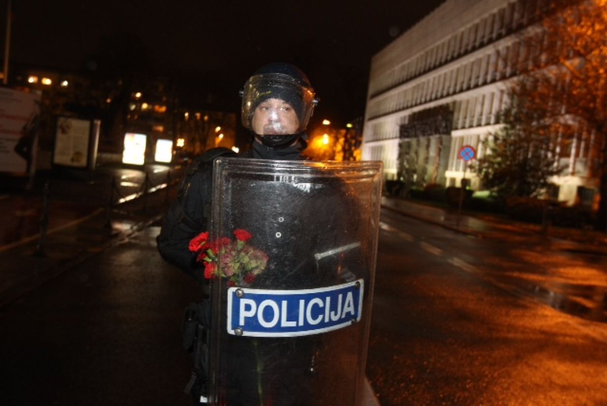 Protestniki v Ljubljani se počasi razhajajo, pred parlamentom jih vztraja še približno tisoč. Policija je med njimi pridržala pet mladoletnikov, pri kateri so zasegli petarde, nož, teleskopsko palico in barvo za metanje na policiste.