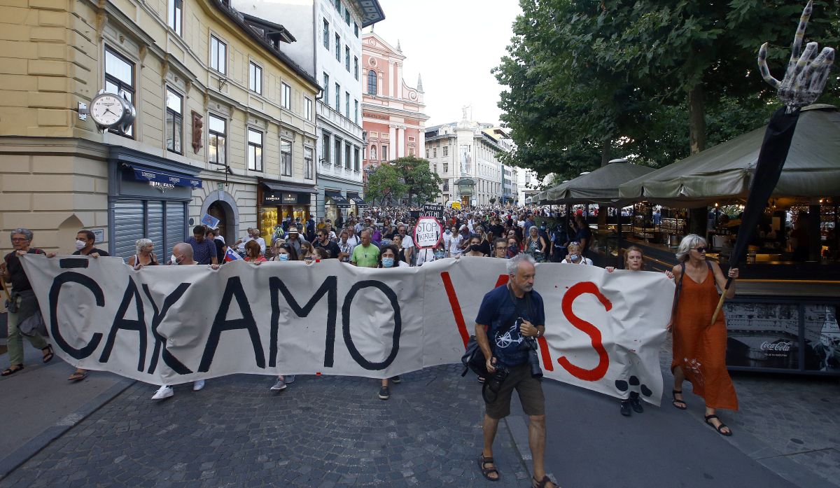 Po govorih so se protestniki, ki naj bi se jih po ocenah udeležencev zbralo okoli 3000, v povorki odpravili po ulicah središča Ljubljane. Ustavili so se tudi na Gregorčičevi ulici pred poslopjem vlade, kjer so nadaljevali z nagovori, na asfalt pred vladnim poslopjem pa so prilepili tudi papirnate odtise stopal.