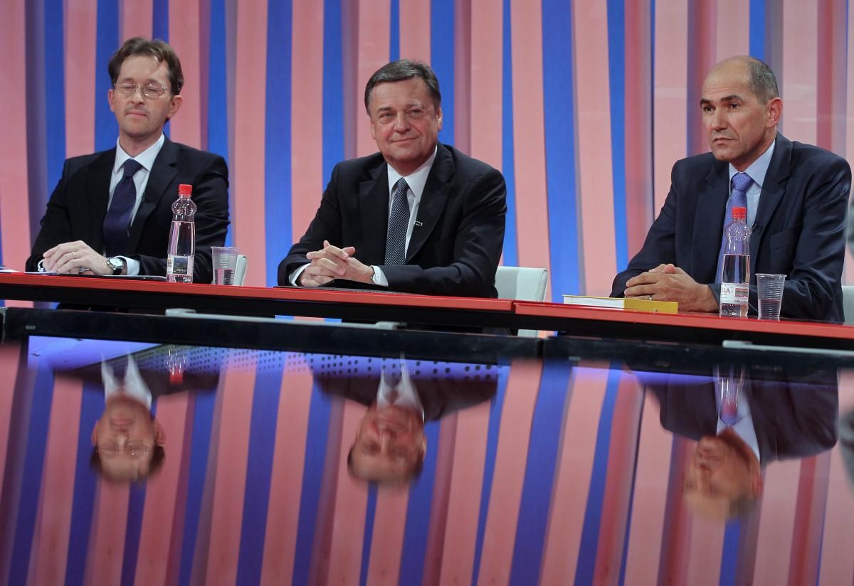 Predsedniki strank, ki imajo na letošnjih parlamentarnih volitvah sodeč po javnomnenjskih anketah največ možnosti za zmago, so se danes soočili v oddaji Pogledi Slovenije na TV Slovenija. Janez Janša, Gregor Virant in Zoran Janković so na soočenju s sindikalisti in gospodarstveniki govorili o tem, kako bi obudili slovensko gospodarstvo.