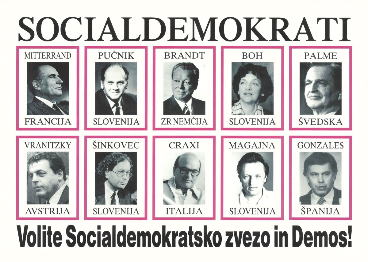 Leta 1990 je postal predsednik Demokratične opozicije Slovenije (Demos), v katero so se povezale še Slovenska demokratična zveza (SDZ), Slovenski krščanski demokrati, Slovenska kmečka zveza (predhodnica SLS), Zeleni Slovenije in Slovenska obrtniška stranka (pozneje Liberalna stranka). Na predvolilnih plakatih je bil Pučnik v družbi evropskih socialdemokratov: nemškega Willyja Brandta, avstrijskega Franza Wranitzkega, francoskega Francoisa Mitteranda, italijanskega Bettina Craxija, švedskega Olafa Palmeja in španskega Felipeja Gonzalesa. Socialdemokratska stranka pa se je med drugim zavzemala za legalizacijo prostitucije in za delavsko samoupravljanje.
