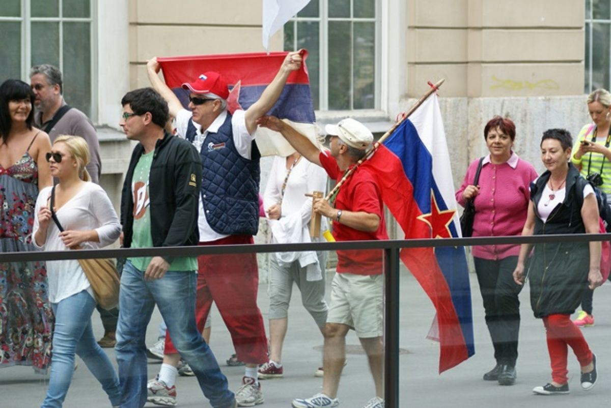 S simboli nekdanjega totalitarnega režma očitno ne gre več na nobenem javnem shodu. V središču Ljubljane je bil namreč v skladu z napovedjo Iniciative zdravnikov shod za ohranitev javnega zdravstva. Kljub temu, da je danes dan državnosti, je bilo samo nekaj zelo majhnih slovenskih zastav, so pa bile zato velike z – rdečo zvezdo.